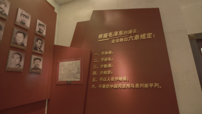 那么在這次會議中,毛主席還提出了我們必須防止“四種情緒”,分別指的是:驕傲的情緒,以功臣自居的情緒,停頓起來不求進步的情緒,貪圖享樂、不愿再過艱苦生活的情緒。會議最后一天,毛主席還向全黨提出了“六條規(guī)定”,也就是馬上進京了,防止一些領(lǐng)導(dǎo)干部進京以后可能會出現(xiàn)一些現(xiàn)象,比如歌功頌德、居功自傲。所以主席提出:一不做壽、二不送禮、三少敬酒、四少拍掌、五不以人名作地名、六不要把中國同志與馬恩列斯平列。所以說現(xiàn)在我們反過頭來再來看,“兩個務(wù)必”“四種情緒”和“六條規(guī)定”在新時代,可以說也是非常具有現(xiàn)實的意義的。