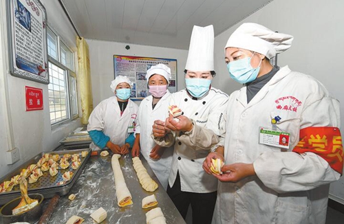 成林和西尕拉毛每天形影不離,形似姐妹,她倆來自不同的地方,卻有著相同的身份——幾年前,她們都是建檔立卡的貧困戶,如今一師一徒,亦師亦友,都成了廚師。她們每天在政府食堂這一方天地,用心烹制一道道美味佳肴,用努力的姿態(tài)繪出了一條新時(shí)代農(nóng)牧民脫貧致富的微笑曲線。