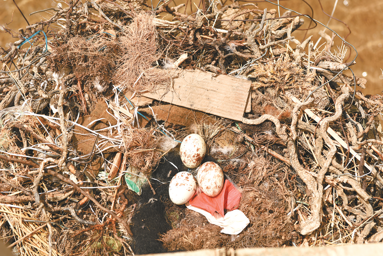 沒走一公里,到了一座橋,加羊多杰又將車叫停,他走到橋欄邊,指著下方橋梁凸出的位置,那里也有一個鷹巢,鷹不在家,鷹巢里有三個蛋。鷹巢的底部是鋼筋焊成的框架,這是黃河鄉(xiāng)生態(tài)管護站專門做的,為防止鷹巢掉到河里,加羊多杰說以前發(fā)生過這樣的事情。