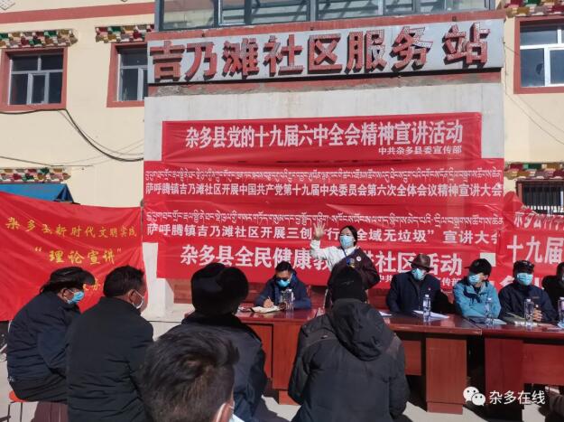 黨的十九屆六中全會(huì)勝利召開(kāi)以來(lái),雜多縣通過(guò)“線上+線下”雙線同步學(xué)習(xí)法,以文化科技衛(wèi)生“三下鄉(xiāng)”活動(dòng)、“文藝+宣講”“志愿+宣講”“健康教育+宣講”“17支理論宣講隊(duì)、全民健康教育宣講隊(duì)、新時(shí)代文明實(shí)踐11支志愿服務(wù)分隊(duì)”形成的“3+3”宣講模式,掀起學(xué)習(xí)貫徹黨的十九屆六中全會(huì)精神宣講熱潮。