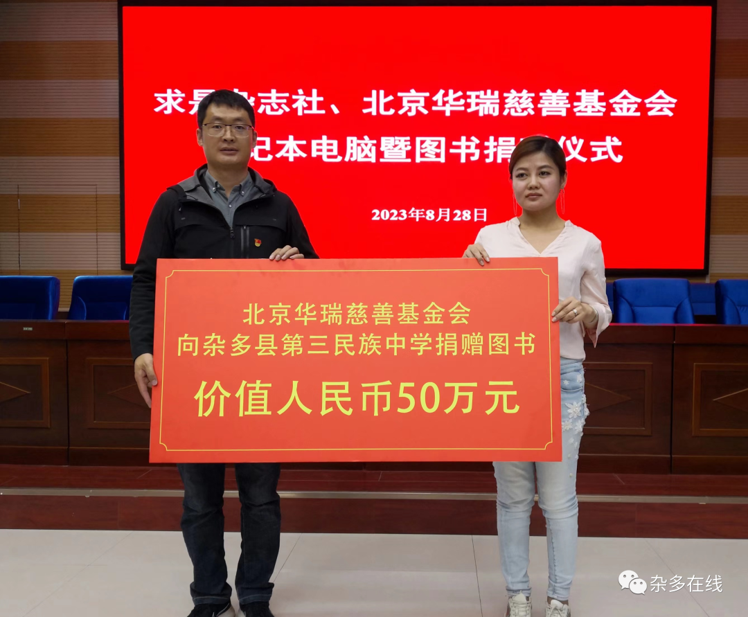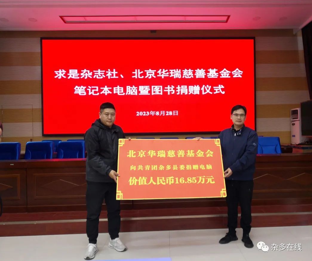 8月28日下午,在求是雜志社的牽線搭橋下,中國長江三峽集團(tuán)、長江文化促進(jìn)會(huì)在雜多縣舉辦幫扶工作座談會(huì),北京華瑞慈善基金會(huì)向雜多縣捐贈(zèng)價(jià)值66萬余元的電腦和圖書。中國長江三峽集團(tuán)黨建工作部(黨組宣傳部)主任張海星、長江文化促進(jìn)會(huì)副會(huì)長蔡庸忠、北京華瑞慈善基金會(huì)秘書長曹熠在會(huì)上發(fā)言,雜多縣委書記劉中致辭??h委副書記陳海東主持會(huì)議。