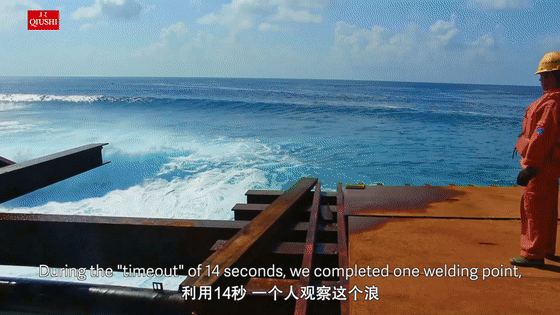 中國建設(shè)者抓緊14秒的涌浪窗口期