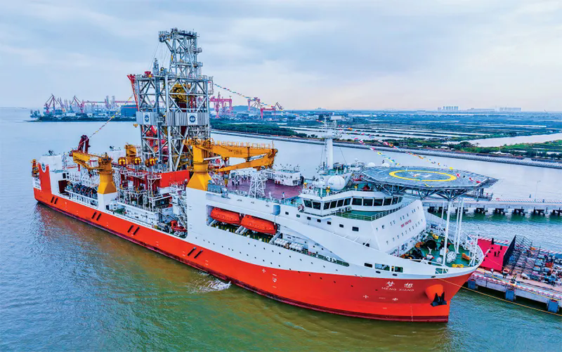 2024年11月17日,拥有最大11000米的钻深能力、我国自主设计建造的首艘大洋钻探船“梦想”号在广州正式入列,标志着我国深海探测关键技术装备取得重大突破。图为当日拍摄的靠泊在广州海洋地质调查局科考码头的大洋钻探船“梦想”号。新华社记者 刘大伟/摄