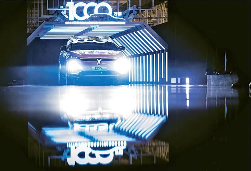 2024年,中国新能源汽车产量首次突破年度1000万辆。图为2024年11月14日,中国新能源汽车1000万辆达成活动现场。新华社记者 肖艺九/摄