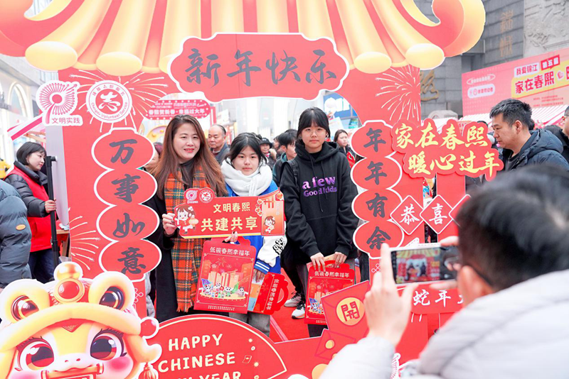 图为2025年1月23日,市民和游客在春熙路街道活动现场打卡拍照。春熙路街道办事处供图
