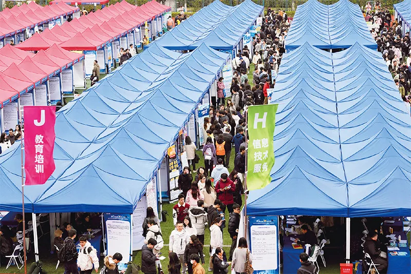 就业是最基本的民生。促进高质量充分就业,是新时代新征程就业工作的新定位、新使命。2025年3月28日,以“‘实’现梦想 ‘就’等你来”为主题的2025上海高校毕业生就业实习招聘会在上海工程技术大学举行。图为当日拍摄的招聘会现场。 新华社记者 刘颖/摄