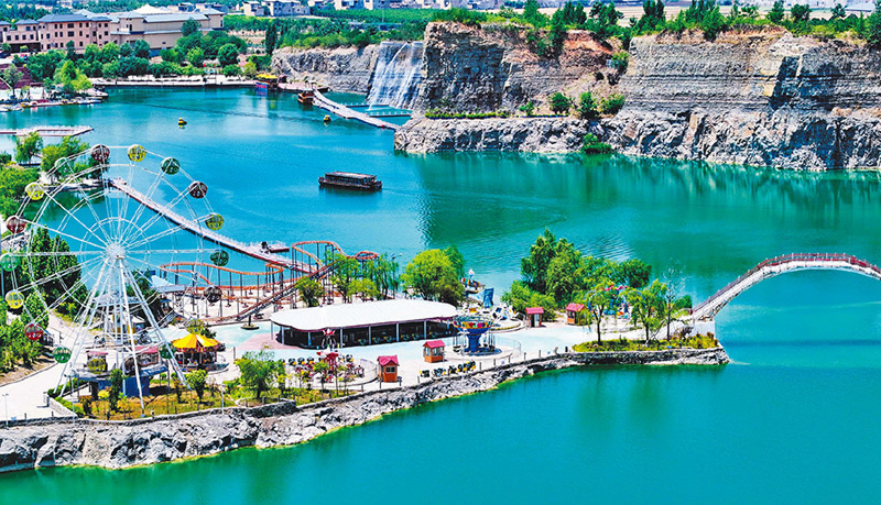 “十四五”规划《纲要》提出,科学规划布局城市绿环绿廊绿楔绿道,推进生态修复和功能完善工程。图为2025年6月4日拍摄的山东省菏泽市巨野县核桃园镇青龙山旅游度假区。该度假区是当地对关停矿山、废弃矿坑进行综合治理和生态修复后打造而成的。 新华社记者 郭绪雷/摄