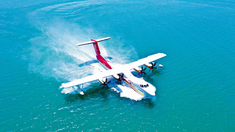 “十四五”期间,我国科技事业取得长足发展,形成一批重大原创性科技成果。2025年4月20日,我国自主研制的AG600“鲲龙”获得中国民航局颁发的型号合格证,标志着全球起飞重量最大的民用水陆两栖飞机通过了严格测试和验证,获得市场“准入证”。图为AG600飞机在湖北荆门开展水上科目试飞。 新华社发 中国航空工业集团供图