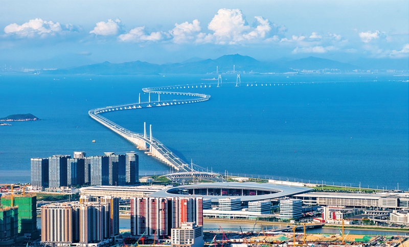 港珠澳大桥的建设创下多项世界之最,体现了一个国家逢山开路、遇水架桥的奋斗精神,体现了我国综合国力、自主创新能力,体现了勇创世界一流的民族志气。图为2025年6月8日拍摄的港珠澳大桥。 视觉中国 陈烁明/摄