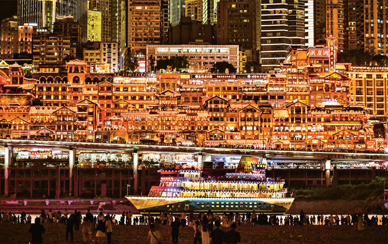 近年来,各地区充分发挥特色优势,创造特色消费新空间,不断丰富消费业态、提升消费体验,有效激活市场潜力。图为2025年5月28日,游客在重庆市乘坐游轮观赏夜景。 新华社记者 王全超/摄