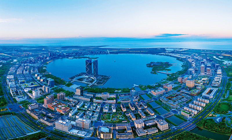 自2019年成立以来,中国(上海)自由贸易试验区临港新片区坚持在更深层次、更宽领域、以更大力度推进全方位高水平开放,初步建立起以“五自由一便利”(投资自由、贸易自由、资金自由、运输自由、人员从业自由、信息快捷联通)为核心的制度型开放体系。图为2025年5月21日拍摄的临港新片区。 人民图片 张明伟/摄