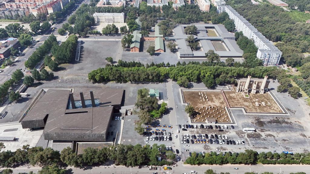 这是8月15日拍摄的侵华日军第七三一部队罪证陈列馆与侵华日军第七三一部队旧址(无人机照片)。新华社记者 王松 摄