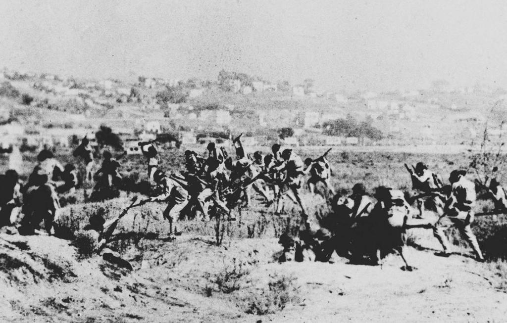 图为平型关战斗中敌我肉搏。 新华社发
