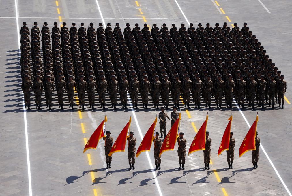 2015年9月3日,中国人民抗日战争暨世界反法西斯战争胜利70周年纪念大会在北京隆重举行。这是“平型关大战突击连”英模部队方队接受检阅。新华社记者 费茂华 摄