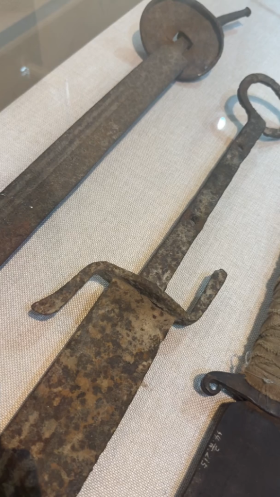 侵华日军第七三一部队罪证陈列馆展出的一把奖励解剖技师的军刀。新华社记者 杨思琪 摄