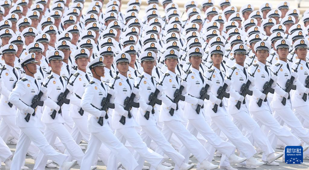 9月3日,纪念中国人民抗日战争暨世界反法西斯战争胜利80周年大会在北京隆重举行。这是中国人民解放军海军方队接受检阅。
