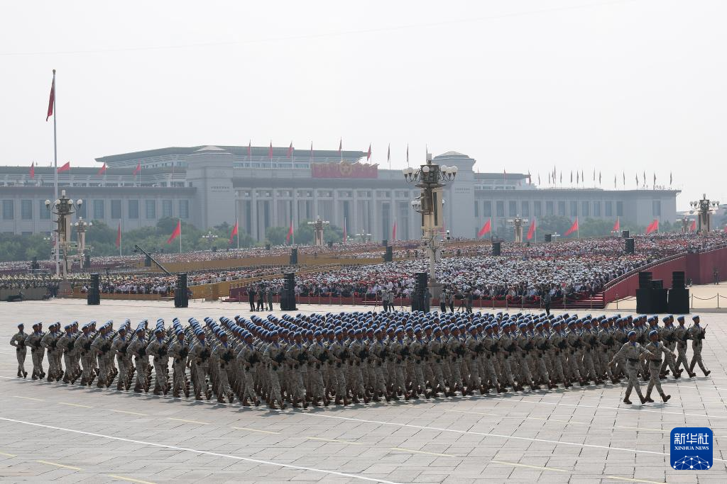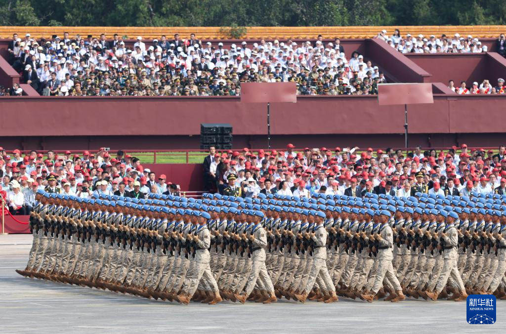 9月3日,纪念中国人民抗日战争暨世界反法西斯战争胜利80周年大会在北京隆重举行。这是维和部队方队接受检阅。