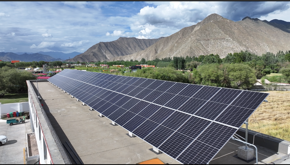中国石化在西藏已建成分布式光伏发电站15座,年度绿电发电量达45万度左右,可减少碳排放约450吨。 中石化供图