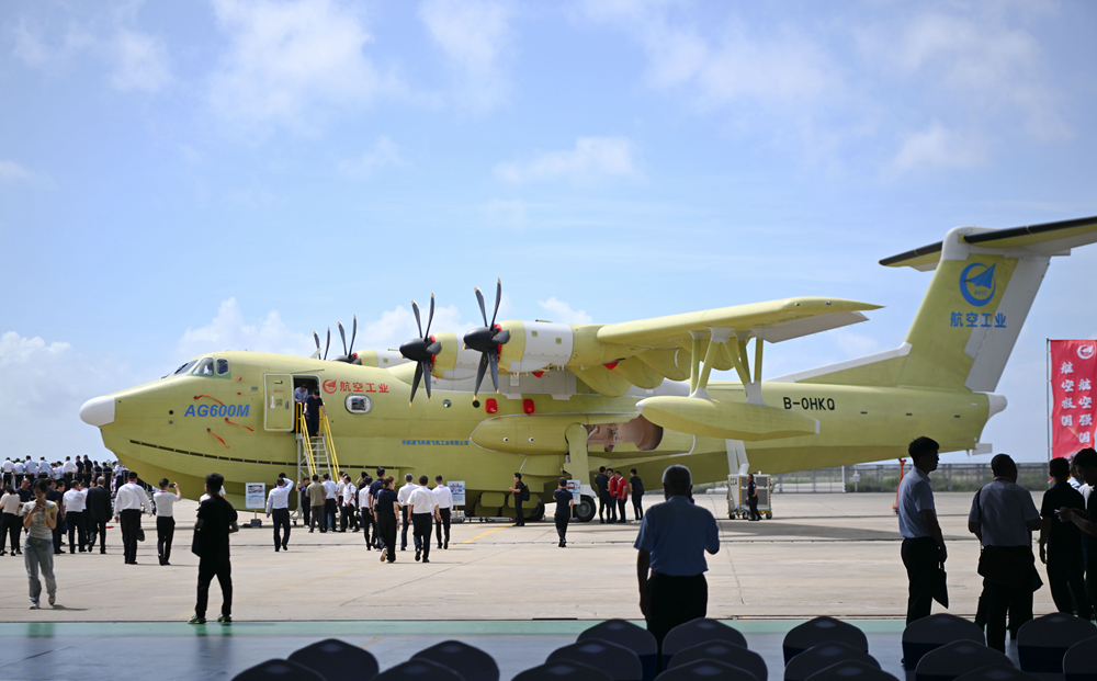 图为2025年6月11日在珠海中航通飞华南飞机工业有限公司拍摄的批量生产的首架AG600飞机。当日,大型水陆两栖飞机AG600“鲲龙”获颁中国民航局生产许可证,标志着AG600飞机正式迈入批量生产阶段。新华社记者 邓华/摄