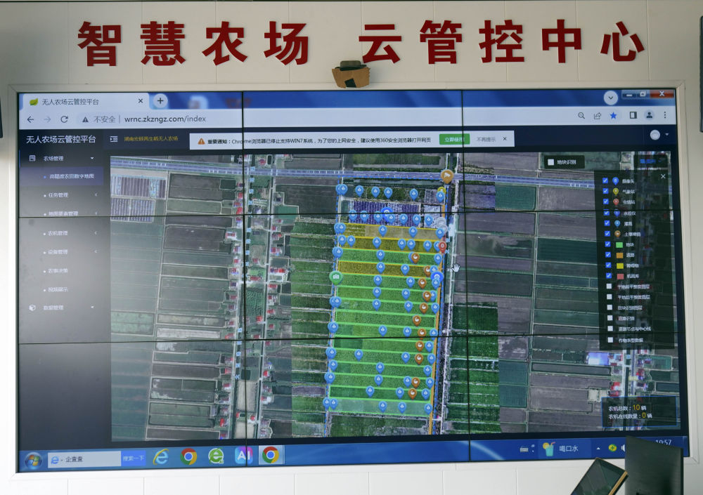 “现在种植和收割不仅用到了各种无人驾驶农机,物联网设备也能承担许多工作。”她指着农田旁的苗情监测摄像头说,当发现水稻出现缺水等情况,农户通过App简单操作即可实现精准灌溉。