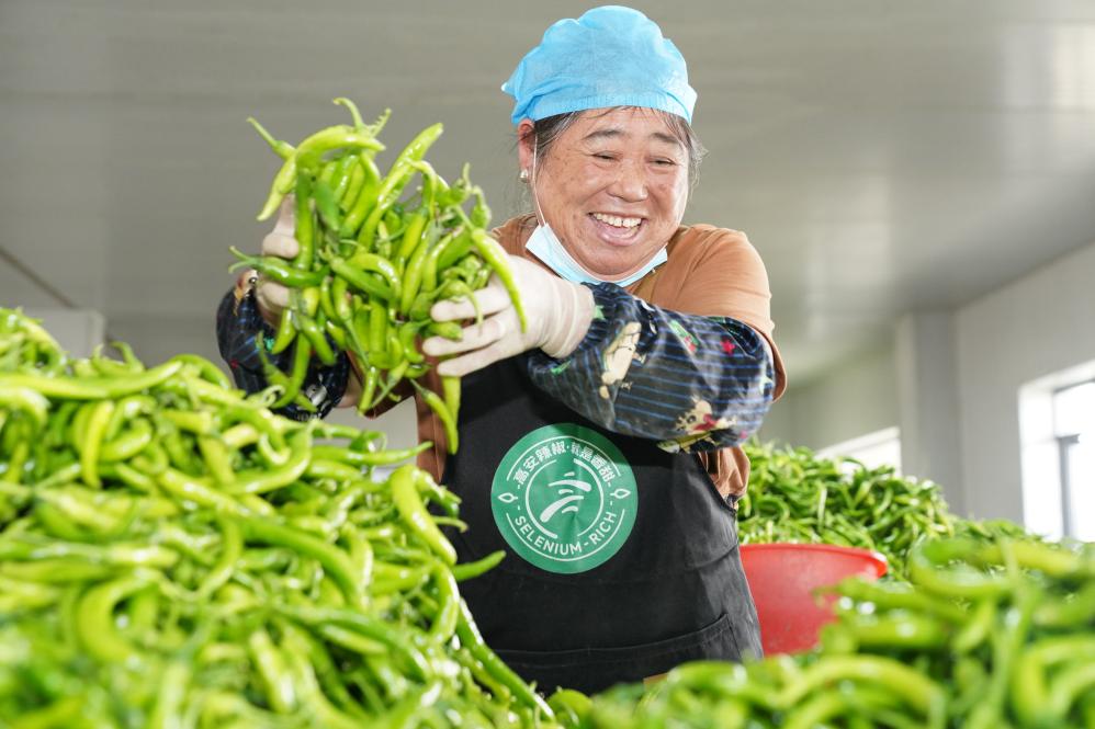 当地建设的2000亩高标准蔬菜大棚已投入使用,逐渐在乡域内形成以辣椒产业园为中心,向精深加工、智慧农业、乡村旅游等多方辐射的全产业链模式。目前产业园带动周边乡镇百姓务工300余人,带动富硒辣椒种植约1万户,每年亩产平均收入达到1.3万元。