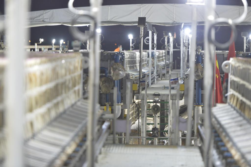 在无锡宜兴水域,一座名为“太湖之光”的水上“移动工厂”正24小时运转。它由多艘作业船串联而成,管道纵横、设备密布。