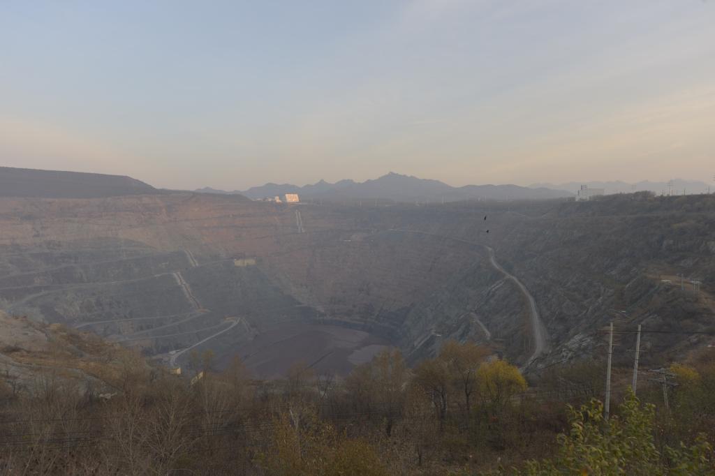 “百年老矿坑,闭坑即修复。”走进鞍钢矿业大孤山铁矿观景台,眼前这座地表面积超10平方公里,最深处海拔负426米的巨型矿坑,坑壁上分布着一排排钢铁管道。从十几公里外输送来的尾矿泥浆,沿管道而下,短短几个月,已经在坑底填出了一个红棕色的平面。