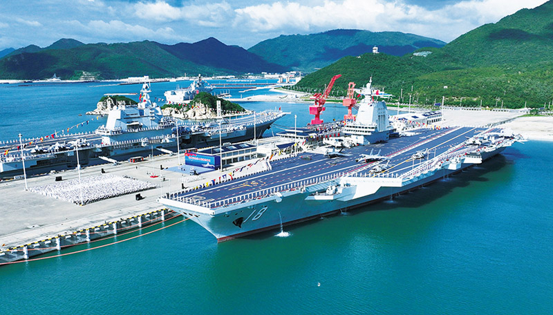 2025年11月5日,我国第一艘电磁弹射型航空母舰福建舰入列授旗仪式在海南三亚某军港举行。福建舰是我国第一艘电磁弹射型航空母舰,也是我国第三艘航空母舰,舷号为“18”,2022年6月下水命名。福建舰由我国完全自主设计建造,其电磁弹射技术处于世界先进水平。 新华社记者 李刚/摄