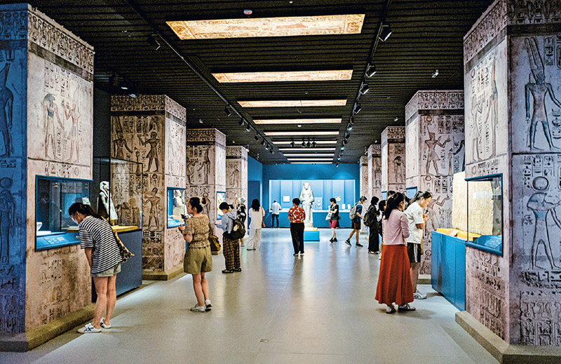近年来,以文娱旅体为代表的服务消费进入“黄金时代”,音乐节、戏剧周、脱口秀巡演、体育赛事季等活动异常火爆,吸引力拉满。上海“金字塔之巅:古埃及文明大展”持续13个月,吸引观众超过277万人次。图为2024年7月16日拍摄的展览现场。 人民图片 王初/摄