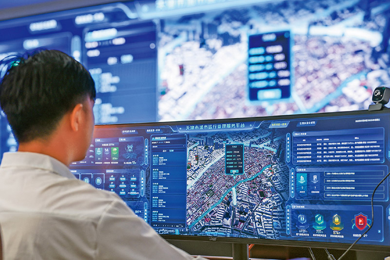近年来,天津市通过有效整合多部门数据资源,实现政务事项“掌上通办”,推进城市运行管理“一网统管”,以数据汇聚共享提升城市治理的精细化与智能化水平。图为2025年7月9日,工作人员通过天津市城市运行管理服务平台进行实时监测。 新华社记者 孙凡越/摄