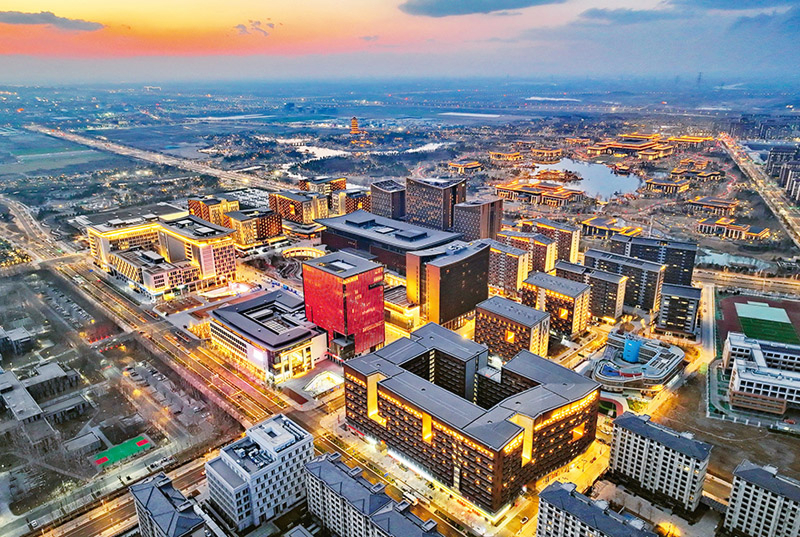 北京通州,大运河畔,城市绿心森林公园与千年运河文脉交相辉映,地下综合管廊与海绵城市系统为安全保驾护航,科技创新与数字经济在充满设计感的楼宇间澎湃涌动……融合古今智慧的北京城市副中心生机勃发,正在着力打造中国式现代化进程中的城市发展样板。