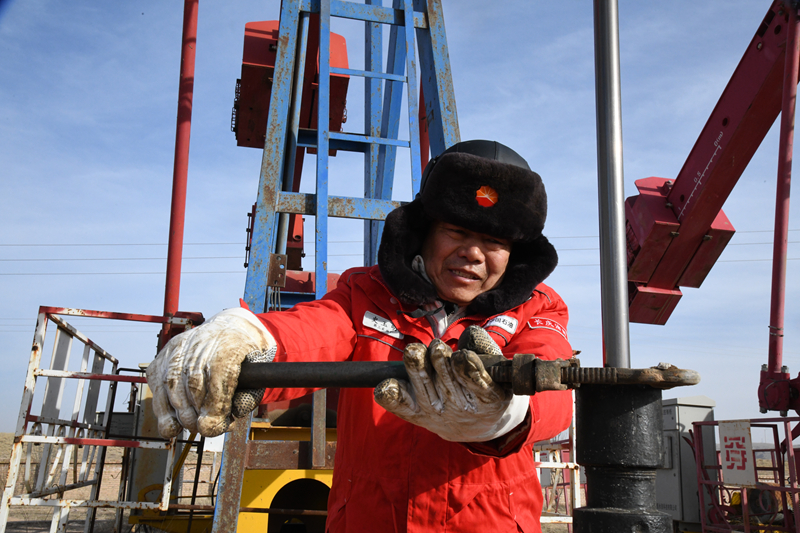 史玉明对油井进行维护保养 (杜嘉 摄)