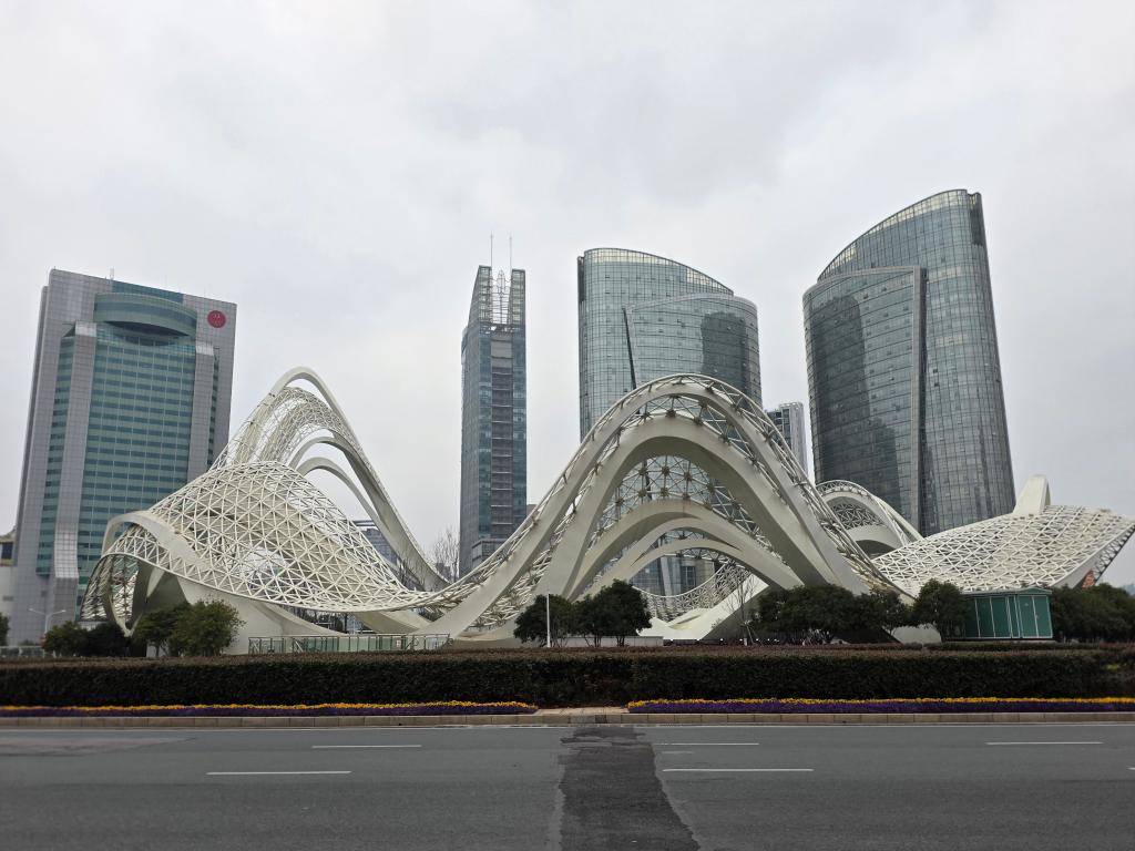 2月17日,武汉光谷广场上的“星河”雕塑。新华社记者汪平 摄