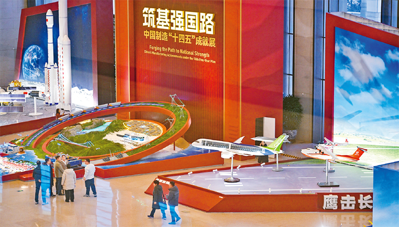 2025年12月29日,“筑基强国路——中国制造‘十四五’成就展”在北京中国国家博物馆开幕。展览设置高端制造、产业基础、智能制造、绿色制造、融合发展、美好生活等6个板块及相关专区,全景呈现“十四五”期间中国制造蓬勃发展的历程。图为当日拍摄的展览现场。 新华社记者 金良快/摄