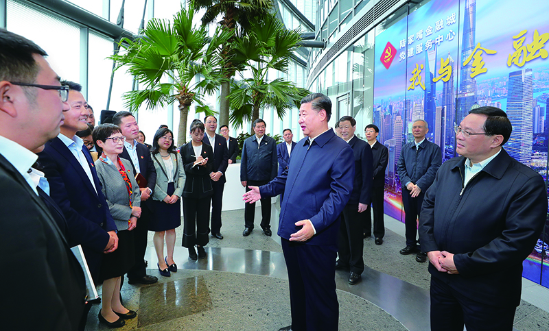 2018年11月6日至7日,中共中央總書記、國家主席、中央軍委主席習近平在上海考察。這是6日上午,習近平在上海中心大廈22層的陸家嘴金融城黨建服務中心,同正在聯(lián)合開展主題黨日活動的企業(yè)黨員親切交談。 新華社記者 謝環(huán)馳/攝