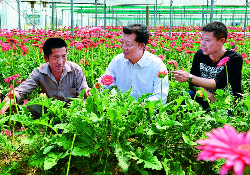 2014年4月18日,時(shí)任福建省政和縣縣委書記廖俊波(中)在該縣鐵山鎮(zhèn)東澗村向花農(nóng)了解花卉生產(chǎn)情況。廖俊波同志生前是福建省南平市委常委、副市長(zhǎng),武夷新區(qū)黨工委書記,2015年6月被中央組織部授予“全國(guó)優(yōu)秀縣委書記”稱號(hào)。2017年3月18日,廖俊波同志在趕往武夷新區(qū)主持召開會(huì)議途中不幸發(fā)生車禍,因公殉職。廖俊波同志任職期間牢記黨的囑托,盡心盡責(zé),帶領(lǐng)當(dāng)?shù)馗刹咳罕姄湎律碜印⒖喔蓪?shí)干,以實(shí)際行動(dòng)體現(xiàn)了對(duì)黨忠誠(chéng)、心系群眾、忘我工作、無私奉獻(xiàn)的優(yōu)秀品質(zhì)。 新華社發(fā) 徐庭盛/攝