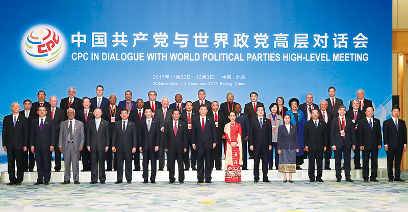 2017年12月1日,中共中央總書記、國家主席習近平在北京人民大會堂出席中國共產(chǎn)黨與世界政黨高層對話會開幕式,并發(fā)表題為《攜手建設(shè)更加美好的世界》的主旨講話。這是開幕式前,習近平與外方主要嘉賓合影留念。 新華社記者 丁林/攝
