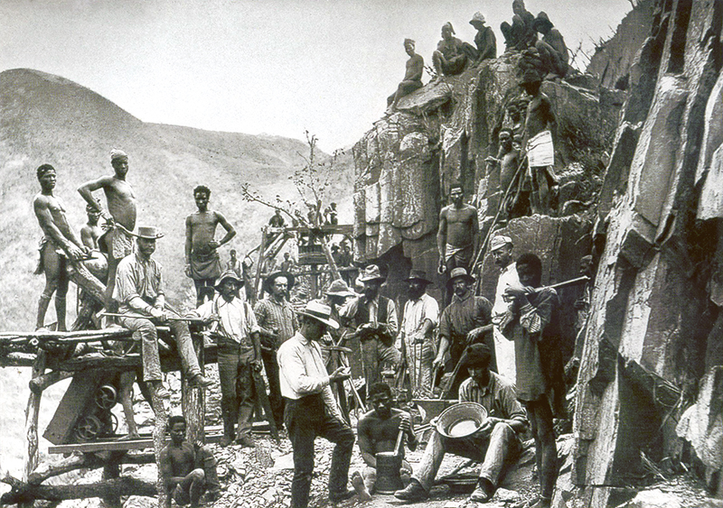 殖民掠奪是資本主義原始積累的重要途徑。早期殖民掠奪的方式,包括奴隸貿(mào)易、攫取金銀等。到了19世紀(jì)末,資本主義進(jìn)入了帝國主義階段,殖民掠奪形式由商品輸出為主變成了資本輸出為主,殖民地國家和地區(qū)依然遭受著殘酷掠奪。圖為1888年攝于南非的反映英國殖民者開采金礦、掠奪黃金的照片。