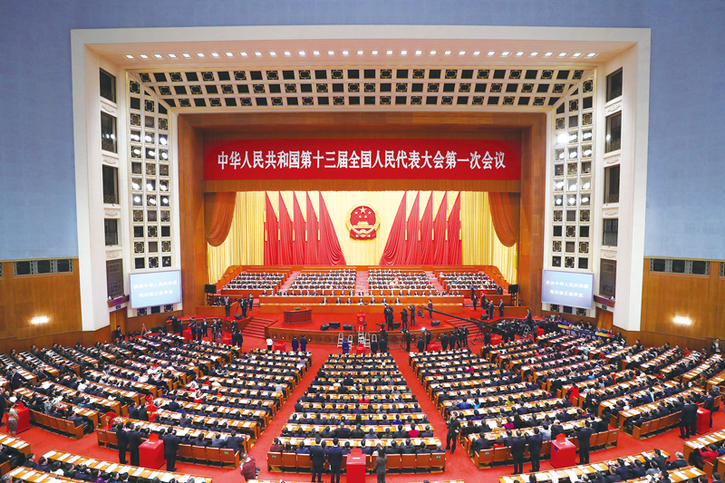 憲法是國(guó)家的根本法,是治國(guó)安邦的總章程。1982年憲法公布施行后,全國(guó)人大根據(jù)改革開放和社會(huì)主義現(xiàn)代化建設(shè)的實(shí)踐和發(fā)展,先后于1988年、1993年、1999年、2004年和2018年對(duì)現(xiàn)行憲法部分內(nèi)容作出重要修正。圖為2018年3月11日,十三屆全國(guó)人大第一次會(huì)議第三次全體會(huì)議表決通過《中華人民共和國(guó)憲法修正案》。 新華社記者 王曄/攝