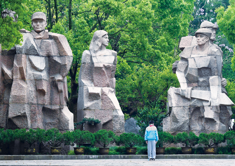 為加強(qiáng)對(duì)英雄烈士的保護(hù),維護(hù)社會(huì)公共利益,培育和踐行社會(huì)主義核心價(jià)值觀,激發(fā)實(shí)現(xiàn)中華民族偉大復(fù)興中國(guó)夢(mèng)的強(qiáng)大精神力量,2018年4月,十三屆全國(guó)人大常委會(huì)第二次會(huì)議全票表決通過英雄烈士保護(hù)法。上圖為杭州市浙江革命烈士紀(jì)念館內(nèi)的烈士群雕前,一名小學(xué)生在緬懷先烈(新華社記者 黃宗治/攝)。下圖為《中華人民共和國(guó)英雄烈士保護(hù)法》(本刊記者/攝)。