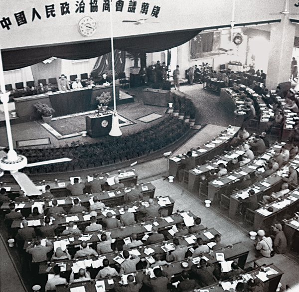 1949年9月21日晚7點,中華民族迎來了一個偉大時刻。肩負協(xié)商創(chuàng)建新中國歷史重任的中國人民政治協(xié)商會議第一屆全體會議在北平中南海懷仁堂隆重開幕。一個舊的時代被歷史車輪碾碎,中國共產黨團結帶領各民主黨派和全國各族人民,開啟了中國歷史的新紀元。 新華社發(fā)