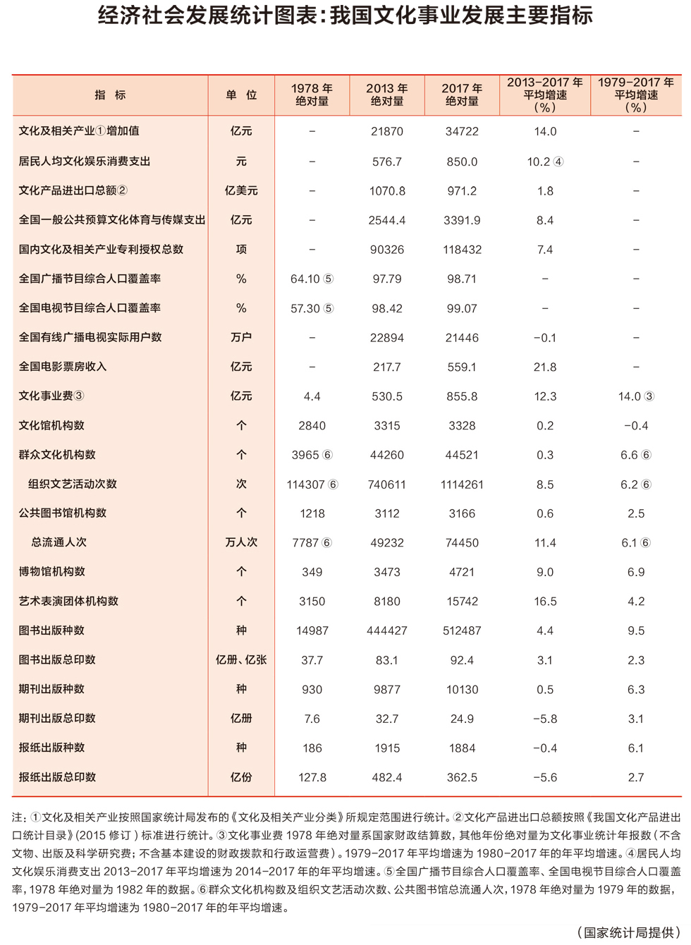 經(jīng)濟(jì)社會(huì)發(fā)展統(tǒng)計(jì)圖表:我國文化事業(yè)發(fā)展主要指標(biāo)