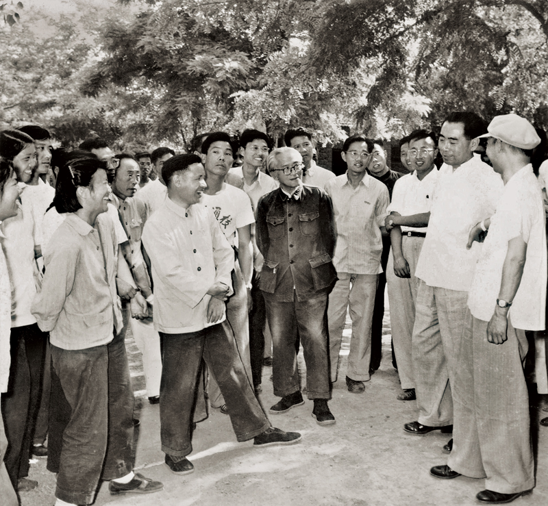 1951年、1957年、1959年周恩來總理三次回到母校南開大學,殷切期望師生“真正能夠很好地為社會主義服務,為將來共產(chǎn)主義服務”。圖為1959年5月28日,周恩來總理視察南開大學。 南開大學供圖