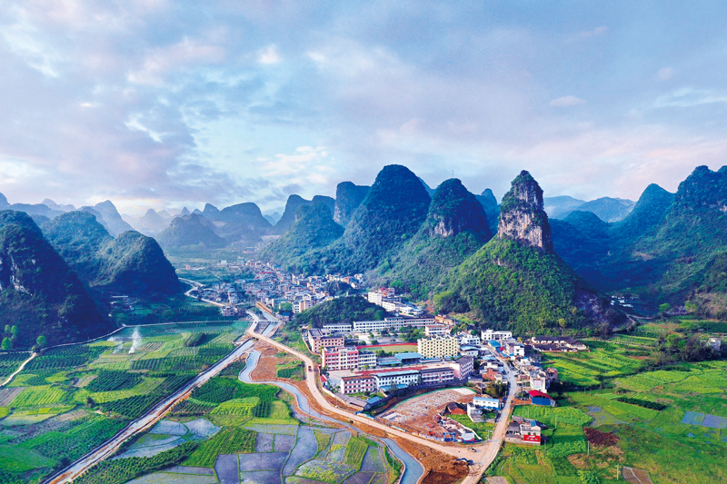 地處桂北的融安縣泗頂鎮(zhèn)原來因地處大山深處,交通不便,基礎(chǔ)設(shè)施落后。隨著脫貧攻堅(jiān)深入推進(jìn),當(dāng)?shù)卮宕逋ㄉ纤嗦?,家家喝上安全飲用水,基礎(chǔ)設(shè)施得到改善,當(dāng)?shù)厝罕娫诜鲐氄叩姆龀窒氯Ρ夹】?。圖為柳州市融安縣泗頂鎮(zhèn)。 人民圖片供圖 韋榮軍/攝