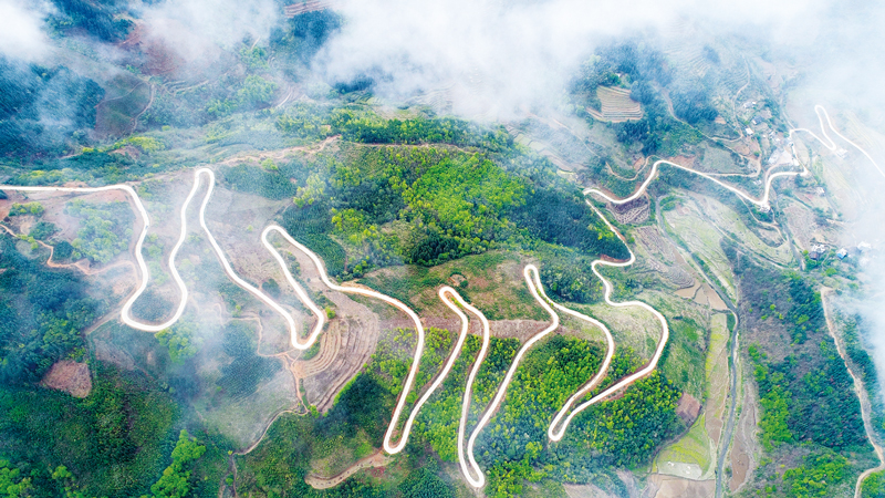 要想富,先修路,穩(wěn)定脫貧還得靠公共服務(wù)。圖為百色市隆林各族自治縣豬場鄉(xiāng)那偉村扶貧水泥路航拍。 廣西壯族自治區(qū)扶貧辦供圖