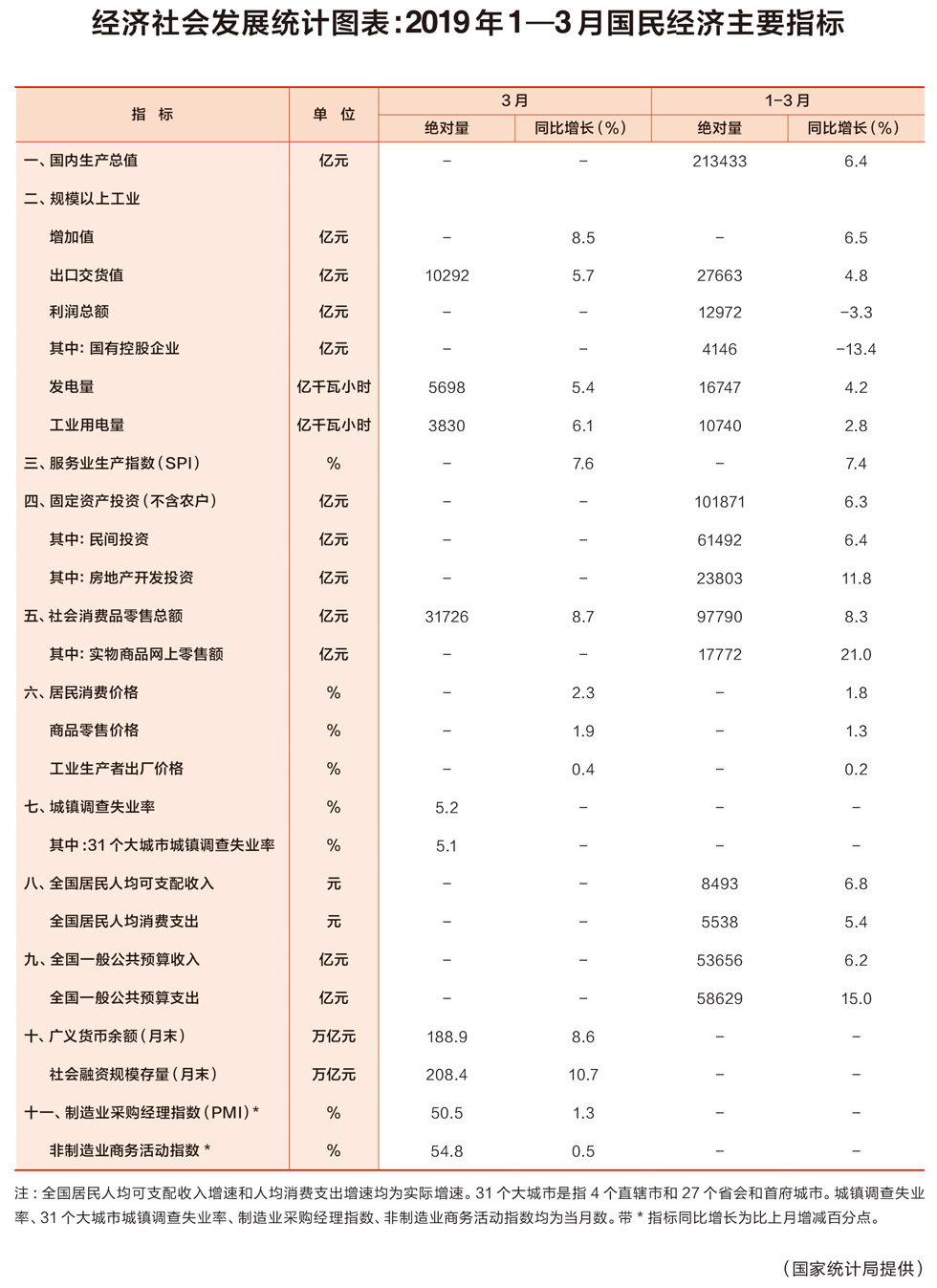 經(jīng)濟社會發(fā)展統(tǒng)計圖表:2019年1—3月國民經(jīng)濟主要指標(biāo)
