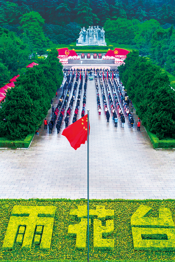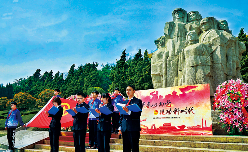 圍繞紀念五四運動100周年,江蘇省各級團組織集中開展“青春心向黨·建功新時代”特別主題團日活動,組織共青團員重溫革命歷史、傳承紅色基因,增強聽黨話、跟黨走的思想自覺和行動自覺。圖為2019年4月29日上午,江蘇省各界青年代表在南京雨花臺烈士群雕廣場莊嚴肅立,集中開展默哀致敬、集體朗誦、重溫誓詞、主題微團課等活動。 團中央宣傳部供圖