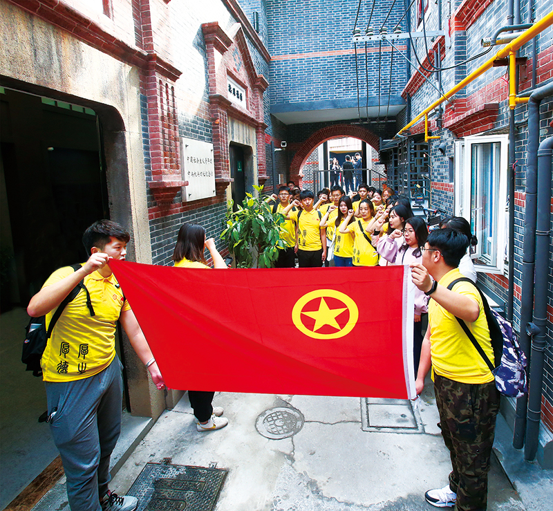 位于上?;春V新返摹皾O陽里”是中國社會主義青年團中央機關(guān)舊址所在地,也是五四運動后眾多有志青年的聚集地。漁陽里舊址紀念館于今年“五四”前夕修繕完畢,正式開放。圖為5月4日,同濟大學(xué)化學(xué)科學(xué)與工程學(xué)院的團員青年在紀念館開展紀念五四運動100周年主題團日活動。 團中央宣傳部供圖