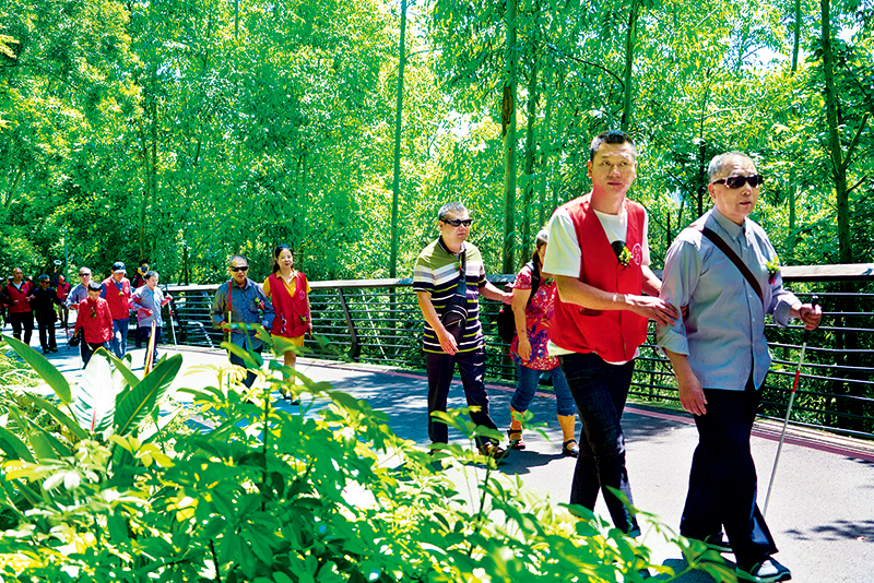 為了在全社會樹立奉獻、友愛、互助、進步的時代新風(fēng),在黨中央的親切關(guān)懷下,共青團發(fā)起青年志愿者行動,得到廣大青年的積極響應(yīng),志愿服務(wù)成為新的社會風(fēng)尚。圖為2019年5月3日,福州青年志愿者引導(dǎo)視障者在郊野公園步行,感受鳥語花香。 新華社記者 林善傳/攝