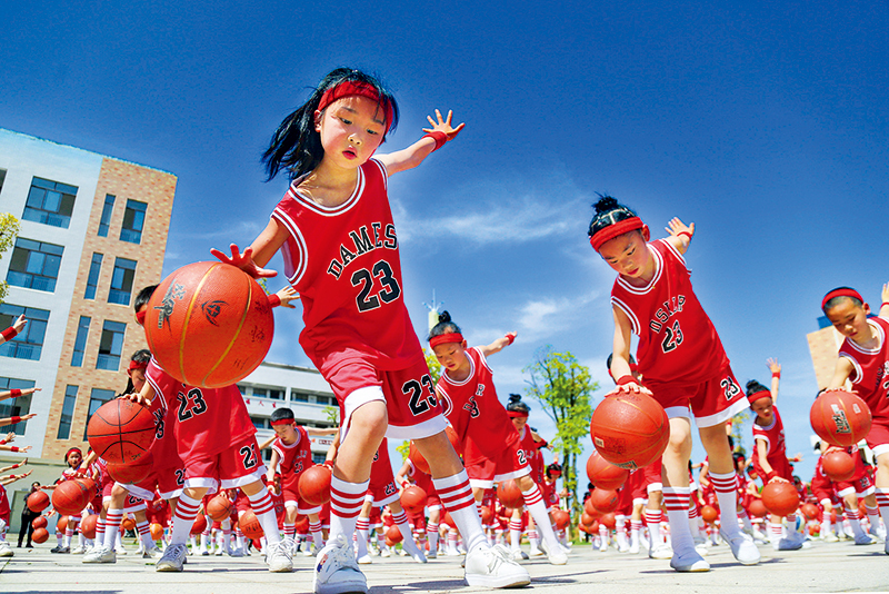 2019年,為支持發(fā)展公平優(yōu)質(zhì)教育,我國(guó)財(cái)政教育投入持續(xù)穩(wěn)定增長(zhǎng),中央財(cái)政用于教育的支出超過1萬億元。圖為2019年4月17日,江西省峽江縣第二實(shí)驗(yàn)小學(xué)學(xué)生在練習(xí)籃球操。 新華社發(fā) 曾雙全/攝